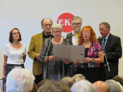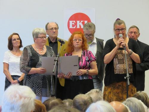 Kuvia juhlasta 31.5.2917. Pääteema lippumme juhlallinen käyttöönotto. Lippun naulauksen aloitti EKL: n kunniajäsen Aili Niemi. Naulasta avustivat: Eilä Lievonen ja Meeri Kiviniitty. Marjaana Vaahetra lahjoitti ruusut "uurastajille"